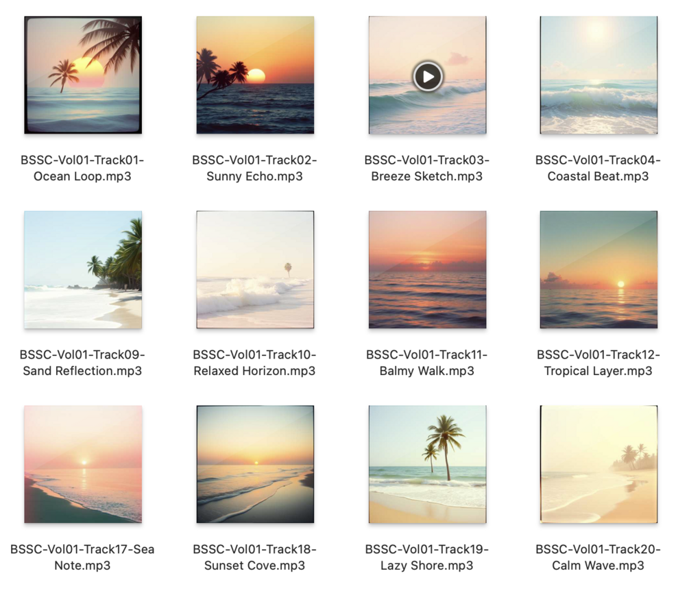 From Ocean Loop to Calm Wave, each track comes with a unique name to help you build emotional resonance and keep your content organized.