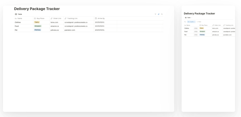 Whether you're a frequent Amazon shopper, a Temu addict, or just someone with a lot of deliveries in progress, this template keeps it all in one place.