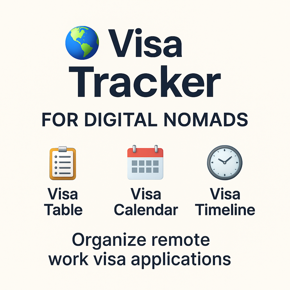 Thanks for grabbing this Notion template — it’s designed to help you stay on top of your visa applications as a remote worker, digital nomad, or expat-in-the-making.