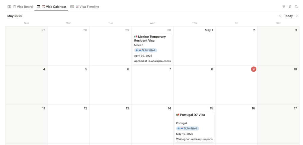 Whether you're applying for Portugal's D7, Thailand's LTR, or Estonia’s digital nomad visa, this system keeps your process organized — so you never miss a deadline or forget a document.