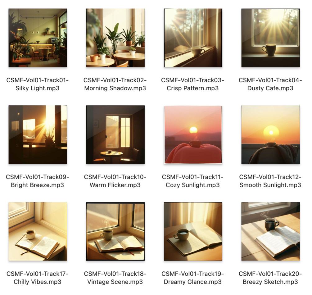 A cozy and inviting collection of 20 royalty-free lo-fi beats, specially crafted for morning routines, coffee shop ambiance, lifestyle vlogs, journaling, reading, and quiet productivity. This warm acoustic-focused pack blends mellow guitar, jazzy piano chords, soft vinyl crackle, and brush drums to evoke that gentle café vibe — perfect for early-day content and creators seeking a calm, nostalgic sound.