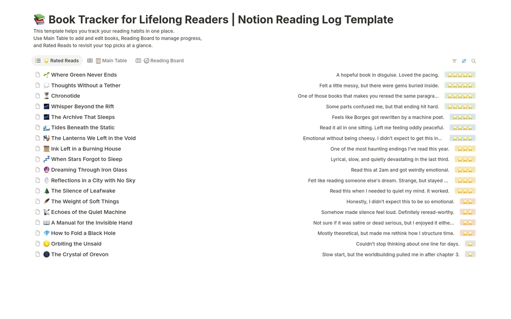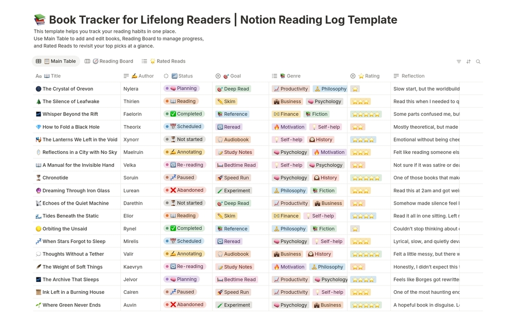 📚 Book Tracker for Lifelong Readers | Notion Reading Log Template